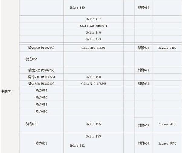 现在最知名的cpu平台分别是高通、联发科、苹果、华为、三星。