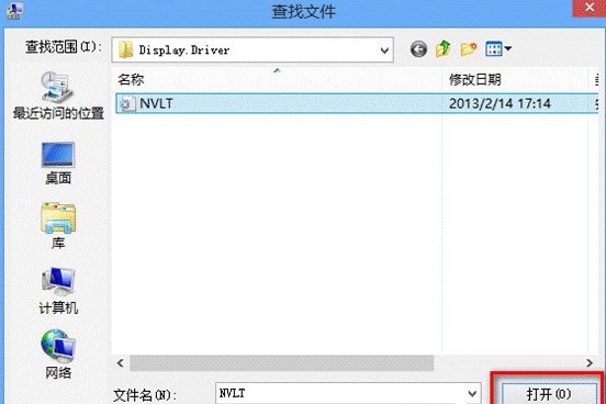 6、选择显卡的inf文件,点击打开(inf文件是驱动精灵下载的显卡驱动中解压出来的,驱动精灵驱动默认下载到D:\MyDrivers\update,您在这个目录下找到对应的显卡驱动,解压后就能看到显卡的inf文件。更新驱动最重要的步骤就是要知道inf文件的路径,NVIDIA显卡驱动的inf文件路径一般在显卡驱动解压后的Display.Driver文件夹内,如图:)。