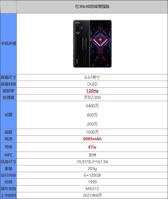 推荐理由:天玑1200处理器,带来67w的充电速度,支持游戏肩键,是红米第一款游戏手机