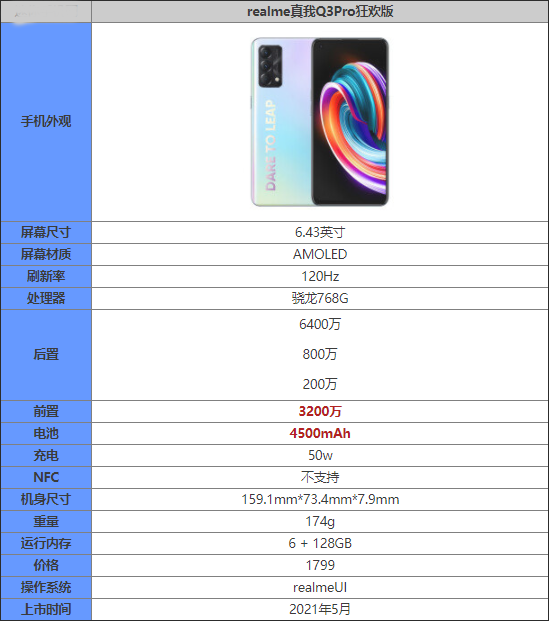 1、高通骁龙768G5G处理器,新生代「5G神U」,先进7nm 制程工艺搭配/核心架构,配备新升级的Kryo 475 CPU和 Adreno 620 GPU,更有第五代AI弓|擎和Spectra 355 ISP, 为真我Q3 Pro狂欢版注入全方位的强大能量。