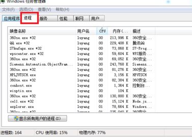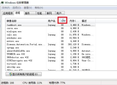 3.点击“CPU”,这样我们就可以看到各个进程使用cpu的情况了。