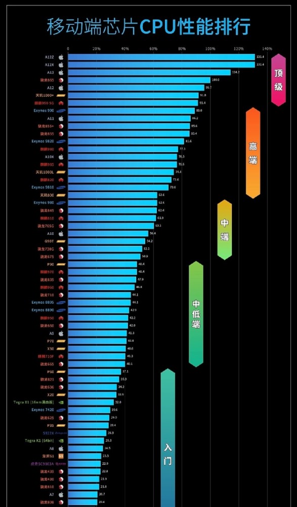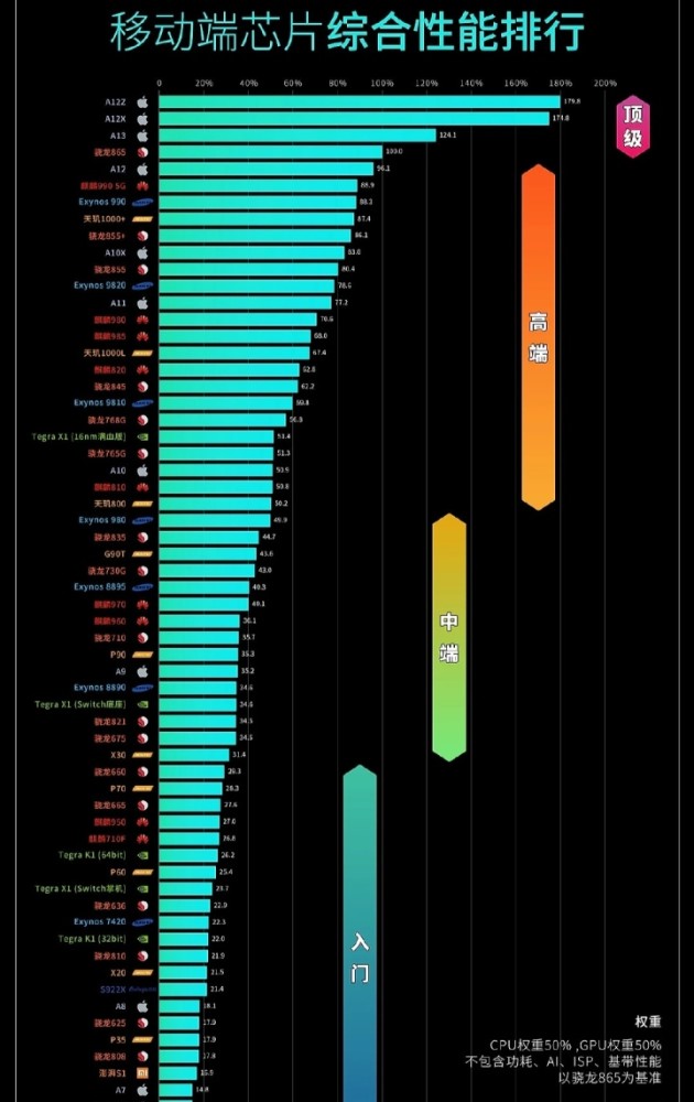 手机处理器排名: