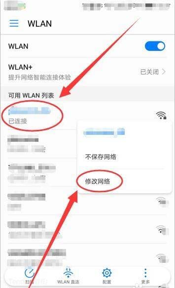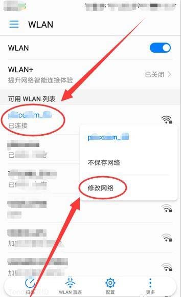 4、用手指按住已连接的WiFi,选择修改网络选项。