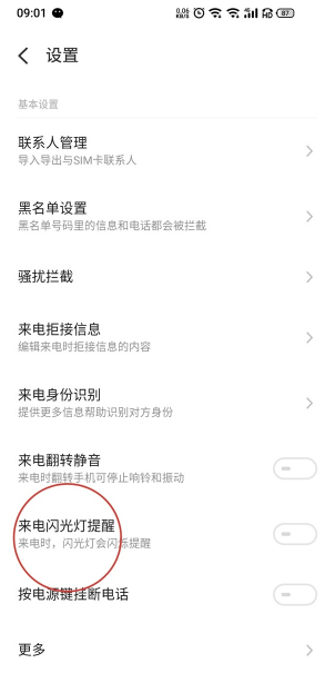 3、将来电闪光灯提醒的开关开启。