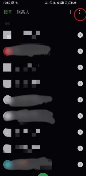 2、在电话页面点击右上角的三个点,选择设置。