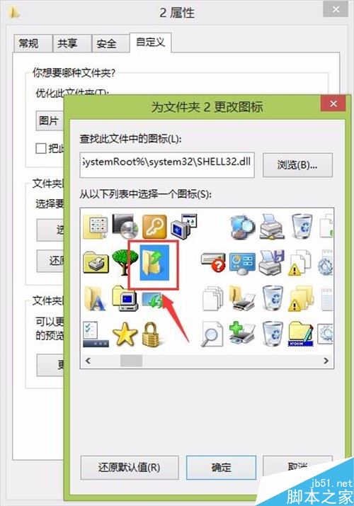 在自定义里面找到并点击“更改图标”,然后选择一个图标,点击“确定”按钮,如图所示: