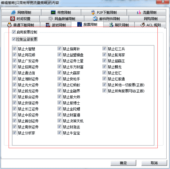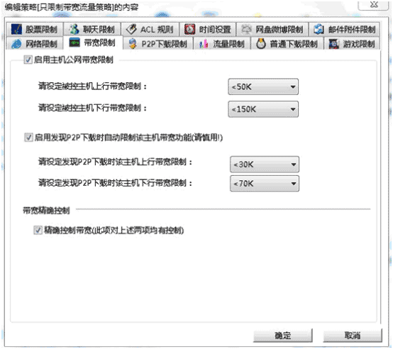 此外,还可以借助于聚生网管的带宽限制功能来过滤局域网不合理的、与工作无关的网络流量,从而可以保护网络资源的合理利用,进一步规范和控制员工上网行为。如下图所示: