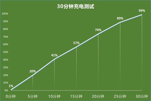 笔者实测新机15分钟就能从1%充至57%,30分钟便可以充至99%,速度极快。超级闪充外加4500mAh大电池,完全可以应对日常工作和影音娱乐需求,这样的搭配也是当前解决续航问题最实用的。