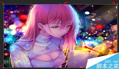 4、然后调整图片的大小,使之与空白背景完全重合。可以使用自由变换Ctrl+t,来改变图片的尺寸大小。拖动四个角,进行不断调整。如图。
