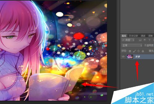 3、将我们下载好的图片,或者自己非常喜欢的图片用PS打开,然后将其拖动到刚刚新建的文件里面。以这张美女图为例。