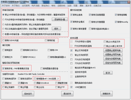 此外,通过“大势至USB屏蔽软件”还可以禁用随身wifi、禁用剪切板、禁止光驱刻录等等,从而进一步保护了电脑文件的安全。