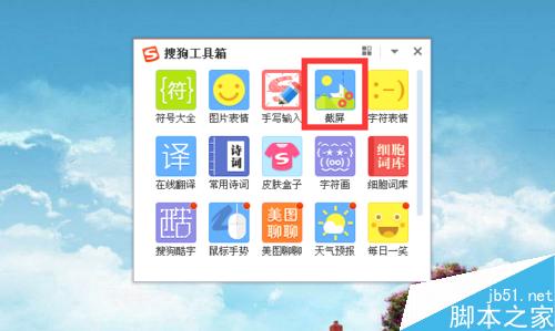 在搜狗工具箱中找到"截屏",点击"截屏"。这种方法也需要下载了搜狗拼音输入法才能使用,大家可以在网上下载到电脑上。