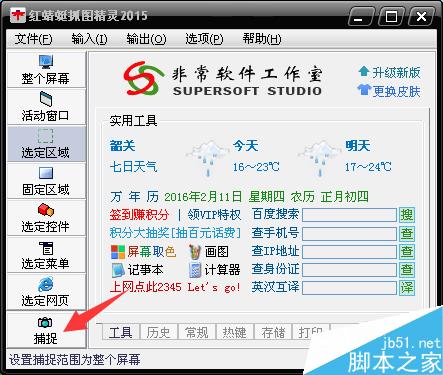 第六种方法就是利用专业的抓图软件来进行截图。这里小编推荐"红蜻蜓抓图精灵",总的来说,这款软件功能比较齐全,大家可以到网上去下载到电脑上试一试。
