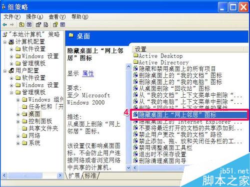 在网络的右侧窗口,找到“隐藏桌面上“网络邻居”图标”这一项,双击此项。