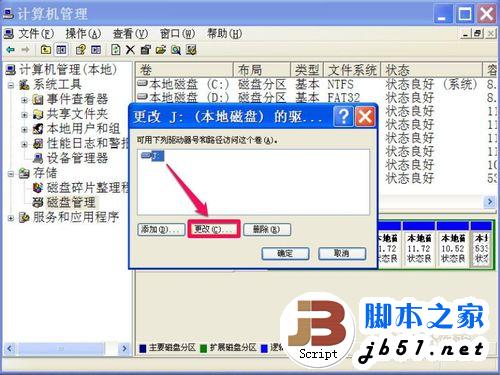 进入更改窗口,既然要更改盘符,当然选择下面三个按钮中的“更改”按钮。