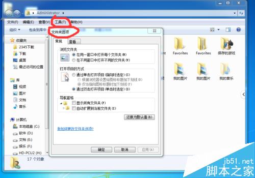 第五步,现在文件夹还是能看到的,我们选择”工具“的”文件夹选项“