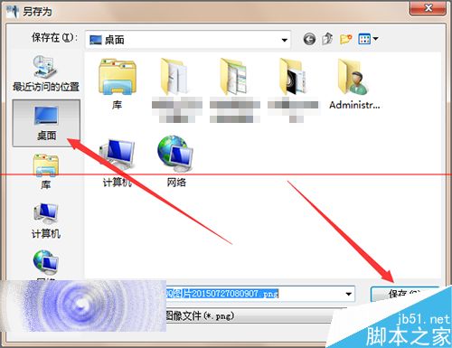 4、接着在弹出的另存为的界面中,我们就选择把这一张图片把它的存储位置放到桌面上。然后点击保存。