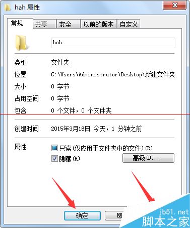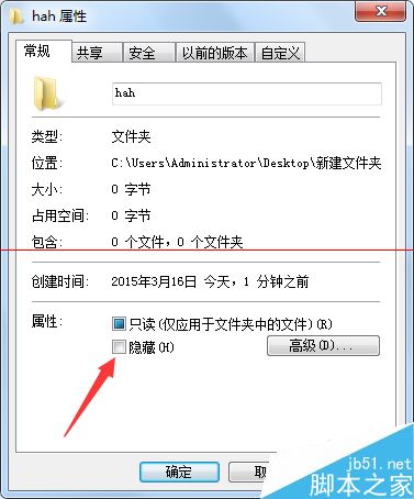 3、勾选“隐藏”,勾选了“隐藏”以后,在右下角再选择“应用”,然后再点击“确定”。