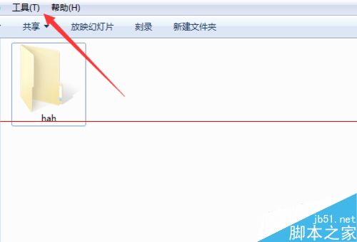 4、以上就完成了隐藏的步骤,但是现在我们依然能够看到刚才隐藏的这个文件夹,找到页面上面的“工具”。