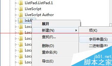 3、右键点击lnkfile选项选择“新建”——“字符串值”