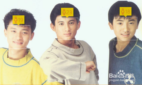 3、用户点击了系统预置的图片,之后系统自动跳转,稍等片刻用户就可以看到该张图片上每个人的年龄了(颜龄),非常神奇。