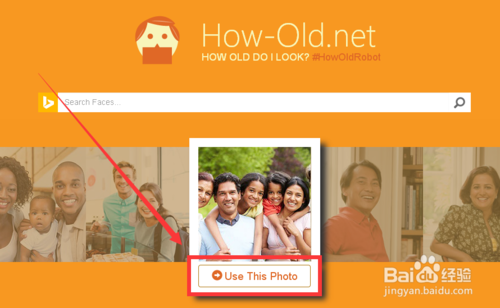 2、进入到其主页后,你会发现这个网站非常的简介。我们可以先点击下图的“use this photo”按钮,现行感受下如何测颜龄的。