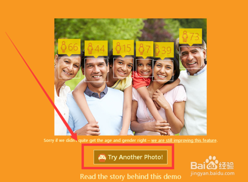 用户如果想测试自己的照片颜龄的话,就点击这个界面中的“try another photo”按钮选项。