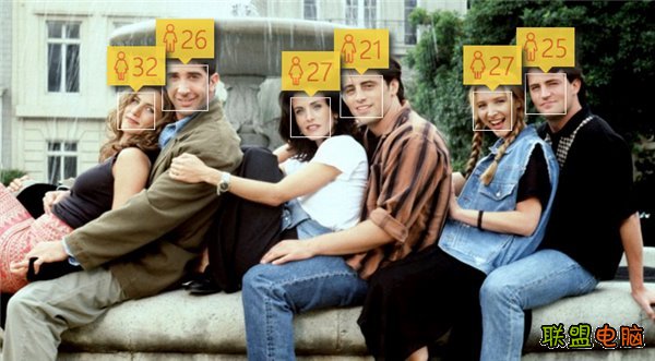 2004年美剧Friends最后一季时六位主演的合影。微软认为,Lisa Kudrow (Pheobe扮演者) 10年间老了4岁,David Schwimmer (Ross扮演者)老了13岁,而且男演员比女演员老的更快。