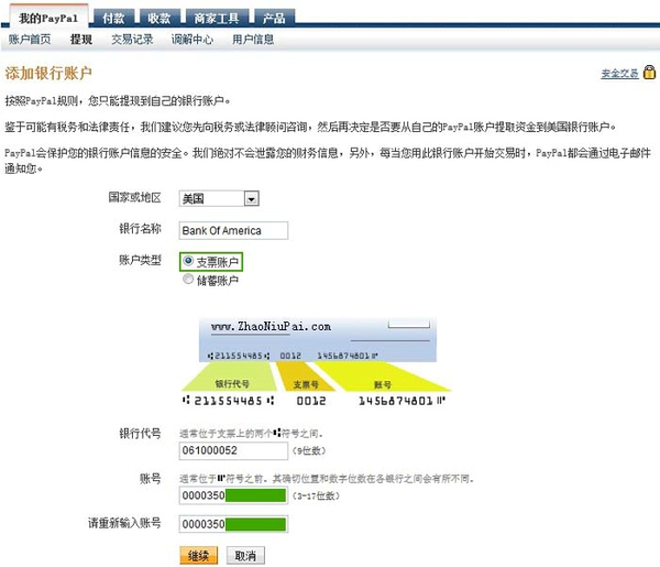 在PayPal添加银行账户(按照PayPal规则,只能提现到自己的银行账户)