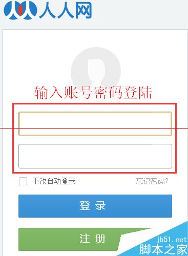1、首先我们在百度搜索“人人网”,登陆官方网站并输入自己的账号和密码,还没有账号的同学的请自行下载,下载过程在这里就不再详述。