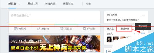 2、登陆成功后,我们就进入了自己的人人主页。我们将视线移至页面右侧,会看到“攒人品、最近来访、生日提醒”一栏,我们点击中间的“最近来访”,再点击后方的“更多来访”选项。