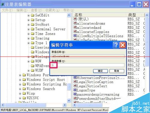 如果在“Winlogon”这一项右侧窗中没有“allocatecdroms”项,可以在Winlogon上右键,新建一个字符串值(REG_SZ),命名为“allocatecdroms”,将其值设为0。