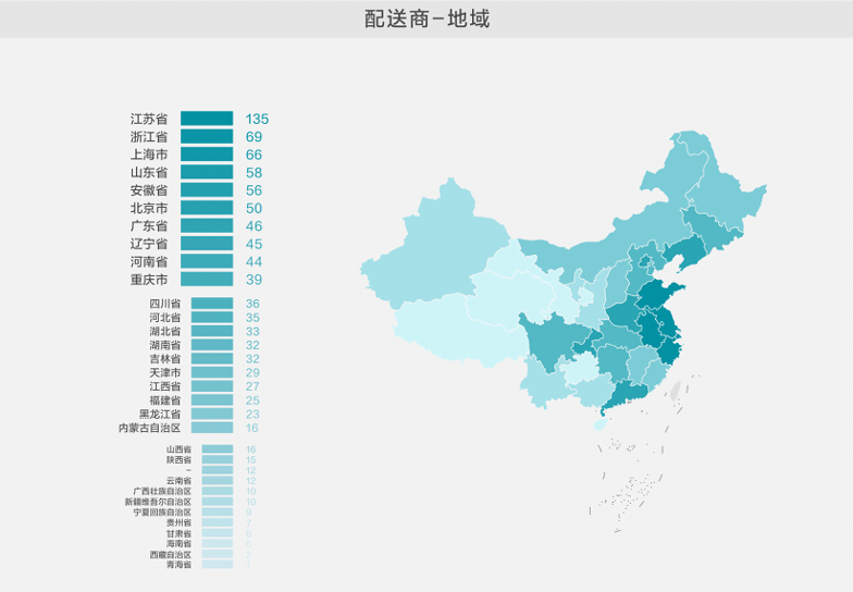 接下来的一个问题是,就算赢了判决又能怎么样?我们从1900多份判决里面提取出了1000多家配送商,这些配送商是分布在全国各地的,最多的是在江苏省,有100多家配送商。