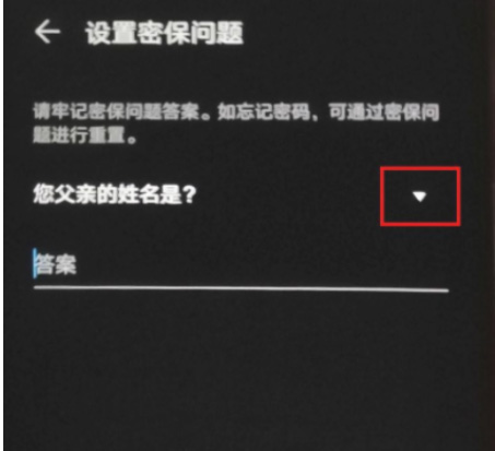 6、设置密码后,还需设置密保问题,点击下拉三角,可以选择问题,选好以后,输入答案,答案要记好,点击“完成”;