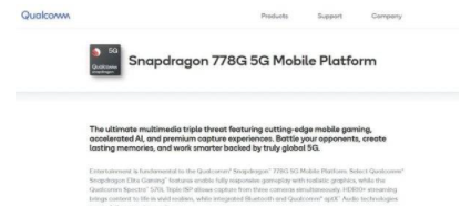 据悉,小米12 Lite搭载高通骁龙778G+处理器。据悉,高通骁龙778G+是高通2021年下半年商用的中端芯片,这颗芯片是骁龙778G的升级版,采用台积电6nm工艺制程,拥有Cortex A78架构大核,最高频率可达2.5GHz。