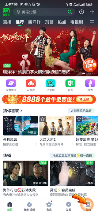 1、爱奇艺关闭自动续费首先需要打开爱奇艺APP,点击首页右下角“我的”图标。