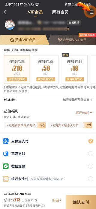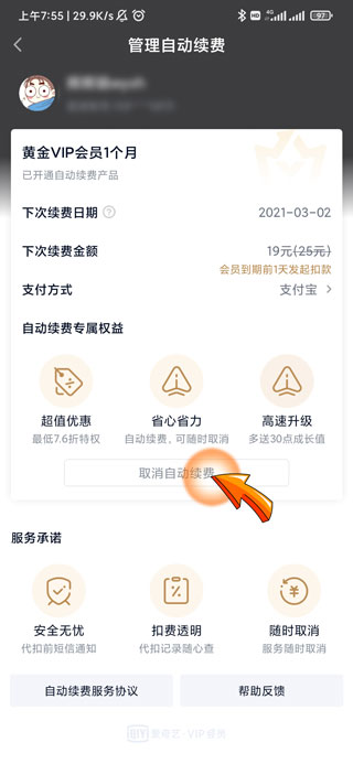 爱奇艺关闭自动续费的步骤