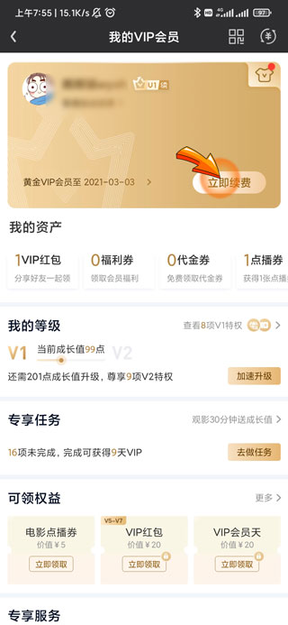 3、之后点击我的会员页面中的“立即续费”选项。