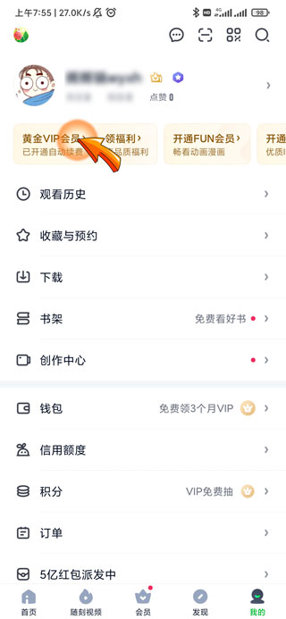2、然后点击头像下方的“黄金VIP会员”选项。
