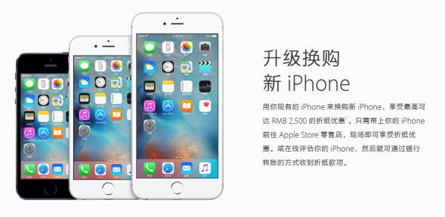 根据苹果官网的描述,用户只需要带上自己的 iPhone 前往苹果官方零售店,现场即可享受折抵优惠。除此之外,用户还可以通过在线形式来评估手上的 iPhone,然后再通过银行转账的方式来收到折抵款项。虽然这一次苹果官网并没有具体解释“新 iPhone”,但是从他们放出的照片来看(如上图所示),iPhone 6s 应该也在升级换购的名单之内。