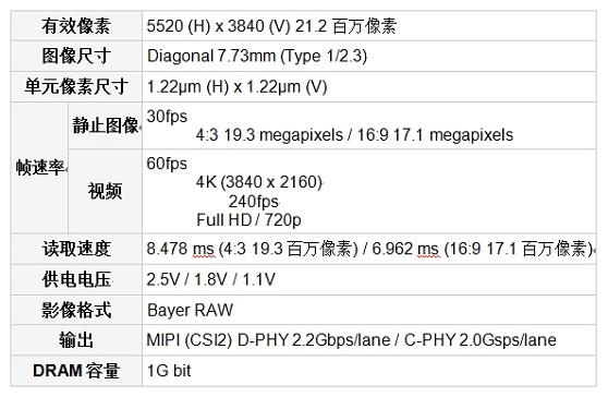 根据索尼官方显示:在堆叠结构中的高速、低能耗、大容量的DRAM帮助下,该新款传感器可以仅用时 1/120 秒就读取一幅达1930万像素的静止图像 (比传统产品快约4倍),同时还可缩减读取每行像素的延时。这种将静止图像的焦平面失真控制在最小程度的技术有很大可能会运用于因缺乏机械快门来控制曝光时间的智能手机,帮助其拍摄快速移动物体的图像。