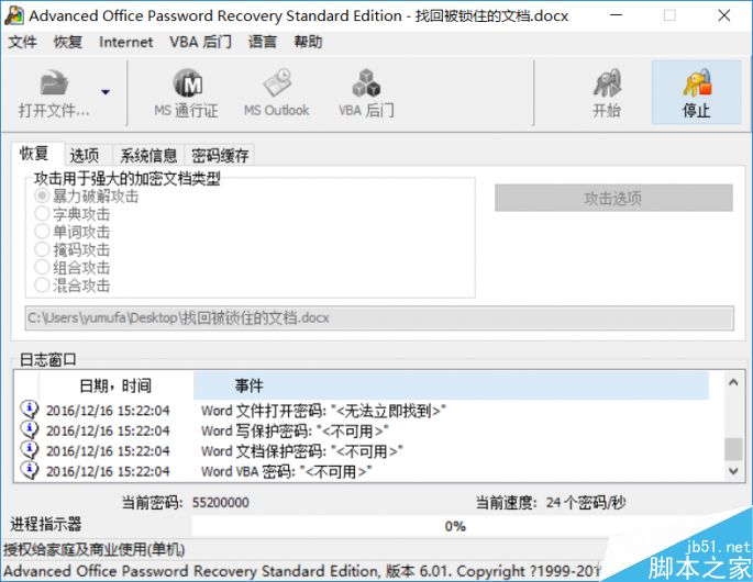 嗯,常见的压缩包解密方式说完了,经常还需要解密的文件还有哪些呢?无非就是Office三大件生成的文件格式和PDF了,前者可选用Advanced Office Password Recovery (http://www.passwordrecovery.cn/xiazai.html)对常见的办公文档(DOC、XLS、PPT)进行解码。它与Archive比较相似,同样采用简单直接的穷举法进行,如果感觉解码的时间太长,对系统资源占用较大的话,可以暂停保存解密方式,利用闲暇时间解码。