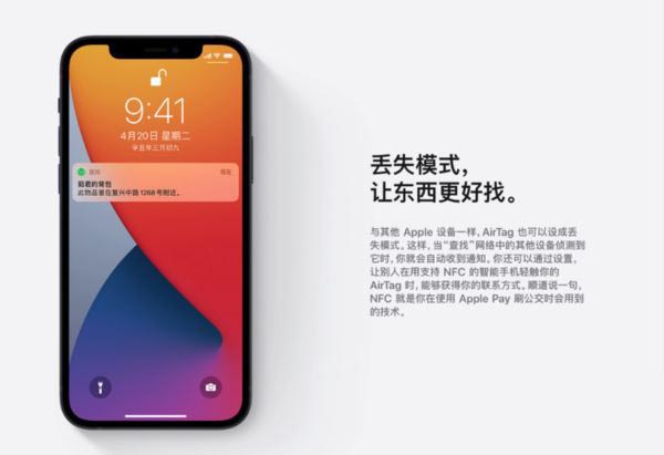 用户还可以将 AirTag设置成“丢失模式”,并在其处于有效范围内或被“查找”网络定位时得到通知。如果有人发现丢失的 AirTag,他们可以使用他们的 iPhone 或任何支持NFC的设备对其进行轻击,然后会弹出一个网页,该网页将会显示丢失者的电话。