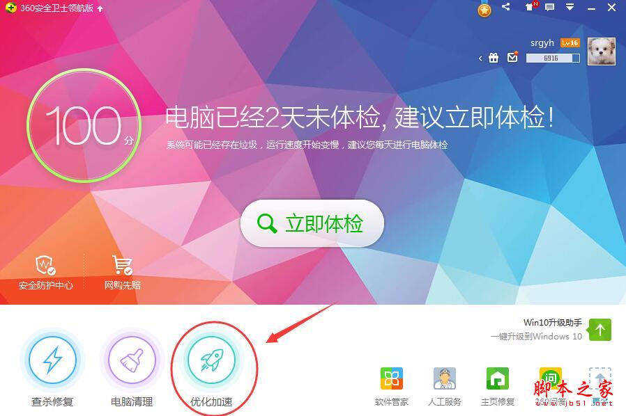 2. 使用360安全卫士优化电脑运行速度。